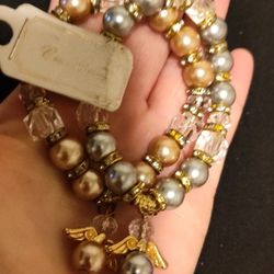 Two NWT Chloe Accessory Beaded Stretch Bracelets W Angle Charms Gold And Silver Tone $15Harker Heights, TX