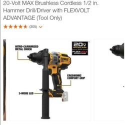 Dewalt DCD806 20V Max XR 1/2" 2 Speed Brushless Hammer Drill Driver$140Harker Heights, TX