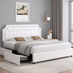 Keyluv King Size Bed Frame with 4 Drawers, Upholstered Platform Bed Frame with Storage and Headboard, Curved Button Tufted Design with Nailhead Trim, $230Killeen, TX