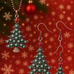 Christmas Tree Necklace & Earrings Set Green Turquoise Silver 3pc$20Harker Heights, TX