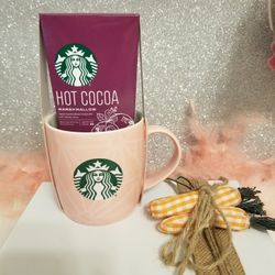 New Starbucks Pink Ceramic Cup 11 fl oz Logo Marshmallow Cocoa Gift Set $34Laredo, TX