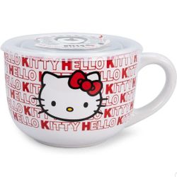 Sanrio Hello Kitty Red Ceramic Soup Mug With Vented Lid | Bowl Container For Ice Cream, Cereal, Oatmeal | Large Coffee Mugs and Cups, Home & Kitchen E$34Laredo, TX