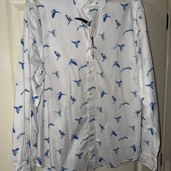 Nautica Button Down Shirt Mens size Large Blue White Parrots Long Slv MSRP $60$25Laredo, TX