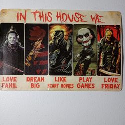 Halloween Metal sign “In This House We.. Man cave Garage Spooky Horror Movie $13Laredo, TX