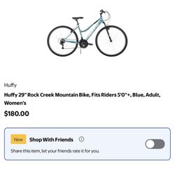 Huffy 29" Rock Creek Mountain Bike, Fits Riders 5'0"+, Blue, Adult,$100Laredo, TX