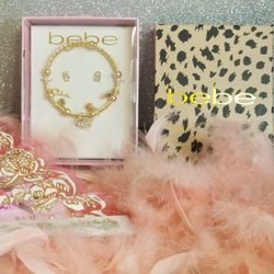 BEBE jewelry Set 2 pc Charm Bracelet Earrings Set Boxed Fashion Jewelry NIB Gold$29Laredo, TX