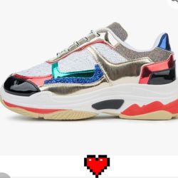 Yoki Women's Chunky Trainer Sequin Lace Up Fashion Sneaker White$54Laredo, TX