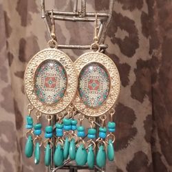 Boho Dangling Gold Tone Turquoise Earrings$16Laredo, TX