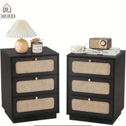 New Mid Century Night Stand Set of 2, Modern Nightstand with 3 Drawers & Curved Linen Panel, Farmhouse End Table Wood Bedside Table Small Side Table f$119Mckinney, TX