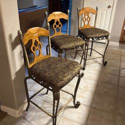 3 - Bar Stools This is a set of Hearth & Hand with Magnolia Wood & Steel Bar Stools in a natural wood finish and black metal frame. $120Flower Mound, TX