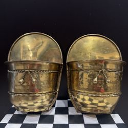 Hammered Brass Wall Pocket Planter Rope Tassel Pattern (2) Made in India $60 for both$60Grand Prairie, TX
