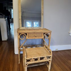 vintage 1970s bamboo and rattan vanity dressing table,stool & mirror,$85Fort Worth, TX
