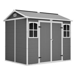 Plastic Utility Shed 8x6 ft with Floor – Lockable Storage Shed for Garden Tools & Trash Bins, All-Weather Outdoor Organizer in Gray-White$700Grand Prairie, TX