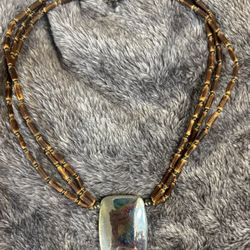 Gorgeous Brown Beaded Necklace With Large Silver Attached Pendant $20Arlington, TX