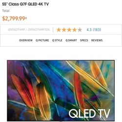 55” Samsung QLED 4K Smart TV QN55Q7F STILL UNDER WARRANTY$250Richardson, TX