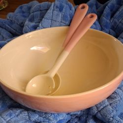 Vintage Universal Potteries Pink Ballerina Salad Bowl with Matching Salad Forks.