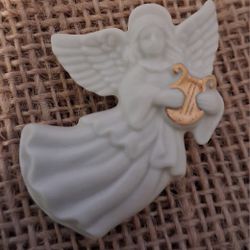 Lenox White Angel Gold Gilded Harpsichord Porcelain Brooch $5Gilmer, TX