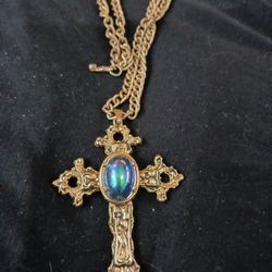 Vintage Beautiful Cross Adorned With Stunning Gemstone. Goldtone. Chan Included. $15Gilmer, TX