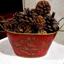 Christmas Tin with Pinecones 6x11$5Lubbock, TX