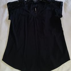 Express Black Silky Shirt with Lace Top Women's Size Large $5$5Lubbock, TX