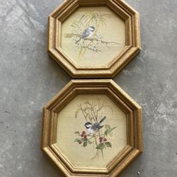 Pair of 2 Vintage Homco Octagon Glass Gold Faux Wood Framed Chickadee Bird Prints$39Lubbock, TX