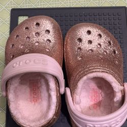 Crocs For Baby Girl. Gold Glitter Fur Inside $12Lubbock, TX