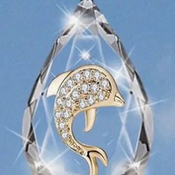 Beautiful Brand New “24 KT Gold “Dolphin Set In A Glass Pendant Set On A 925 Sterling Silver Chain Necklace $115Lubbock, TX