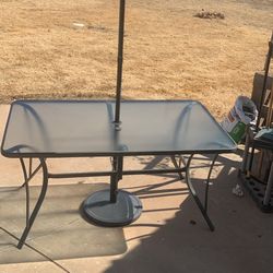 LIKE NEW Patio Set - 5x3ft Glass Table, 6ft Tilt Umbrella & HEAVY Base$110Lubbock, TX