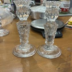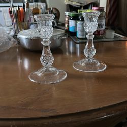 Vintage Hazel-Atlas Clear Glass Daisy Candlestick Holders Set of 2. $20Lufkin, TX