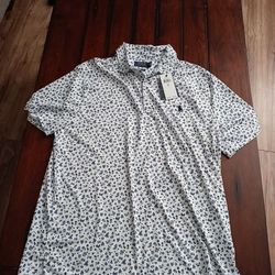 Mens Large NWT Ralph Lauren Polo shirt blue with tan dots $55Lufkin, TX