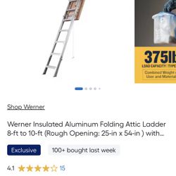 Werner Insulated Aluminum Folding Attic Ladder 8-ft to 10-ft (Rough Opening: 25-in x 54-in ) with$250Grand Prairie, TX