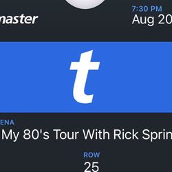 Rick Springfield Tkt- Dickies Arena 8/20$70Wht Settlemt, TX