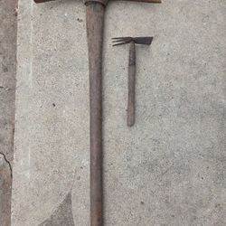 vintage hand tools, specifically a pickaxe and a smaller gardening hoe or mattock. $125Arlington, TX
