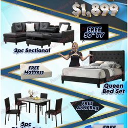 NEW 3 ROOM PACKAGE DEAL- BED MATTRESS DINING ROOM SECTIONAL SOFA AND MORE $54Fort Worth, TX