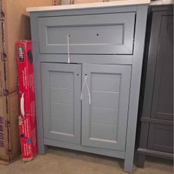 Hanna 24 in. Single Sink Spruce Blue Bath Vanity with White Engineered Stone Top (Assembled