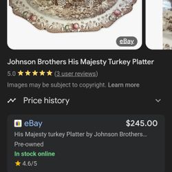 Jjohnson Bros His Majesty.large Turkey Platter$200Fort Worth, TX