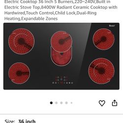 Electric Cooktop 36 Inch 5 Burners,220~240V,Built in Electric Stove Top,8400W Radiant Ceramic Cooktop with Hardwired,Touch Control,Child Lock,Dual-Rin$150Grand Prairie, TX