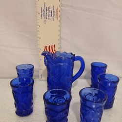 Antique Cobalt Blue Miniature Pitcher And Glasses$70Wht Settlemt, TX