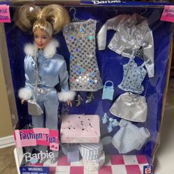Mattel 1999 Fashion Fun Blonde Barbie Doll Gift Set Blue and Silver Clothing and Accessories$45Burleson, TX
