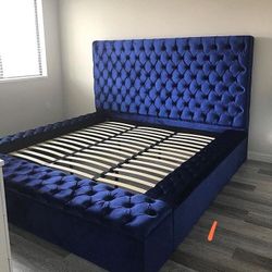 Brand New/ Blue Velvet Queen Storage Platform Bed Frame Cama//King Size Available//Mattress Sold Separately $800Dallas, TX