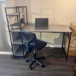 Modern Desk with integrated shelf and office chair$50Dallas, TX