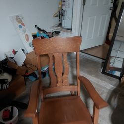 Brown wood rocking chair with small wood matching table$150Fort Worth, TX
