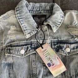 Boxy Fit Fabric Interest Distressed Denim Jacket (new) sz: small$60Desoto, TX