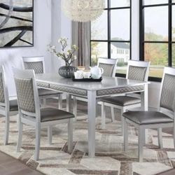 D248-7 Silver Dinning Table and 6 Chairs Dining 7PC Set