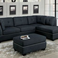 Sienna - Grey Linen Sectional + Ottoman Set FAST Delivery