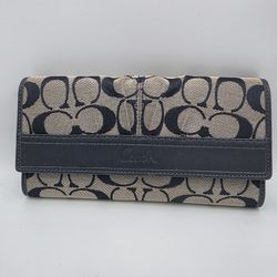 Coach Soho Signature Pleated Checkbook Wallet F42819 Blue Leather Gray Jacquard$60Euless, TX