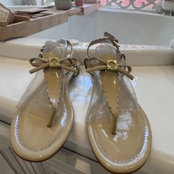 Kate Spade Patent Leather Scallop Nude Bow and Gold Thong Sandal $50Mansfield, TX