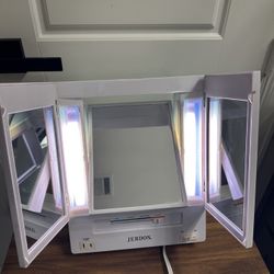 JERDON Tri-Fold Two-Sided Makeup Mirror with Lights - Vanity Mirror with 5X-1X Magnification & Multiple Light Settings - White - Model JGL9W$20Benbrook, TX