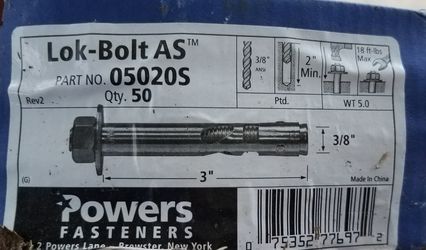 Powers Fastners-Lok-Bolt Anchor Bolts,3/8" x 3"$15Fort Worth, TX