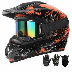 New Dirt Bike Helmets Kids Motorcycle Helmet Youth ATV Motocross Full Face Men Women Off-Road Mountain Bike Helmet Adult with(Gloves Goggles Mask) DOT$50Desoto, TX